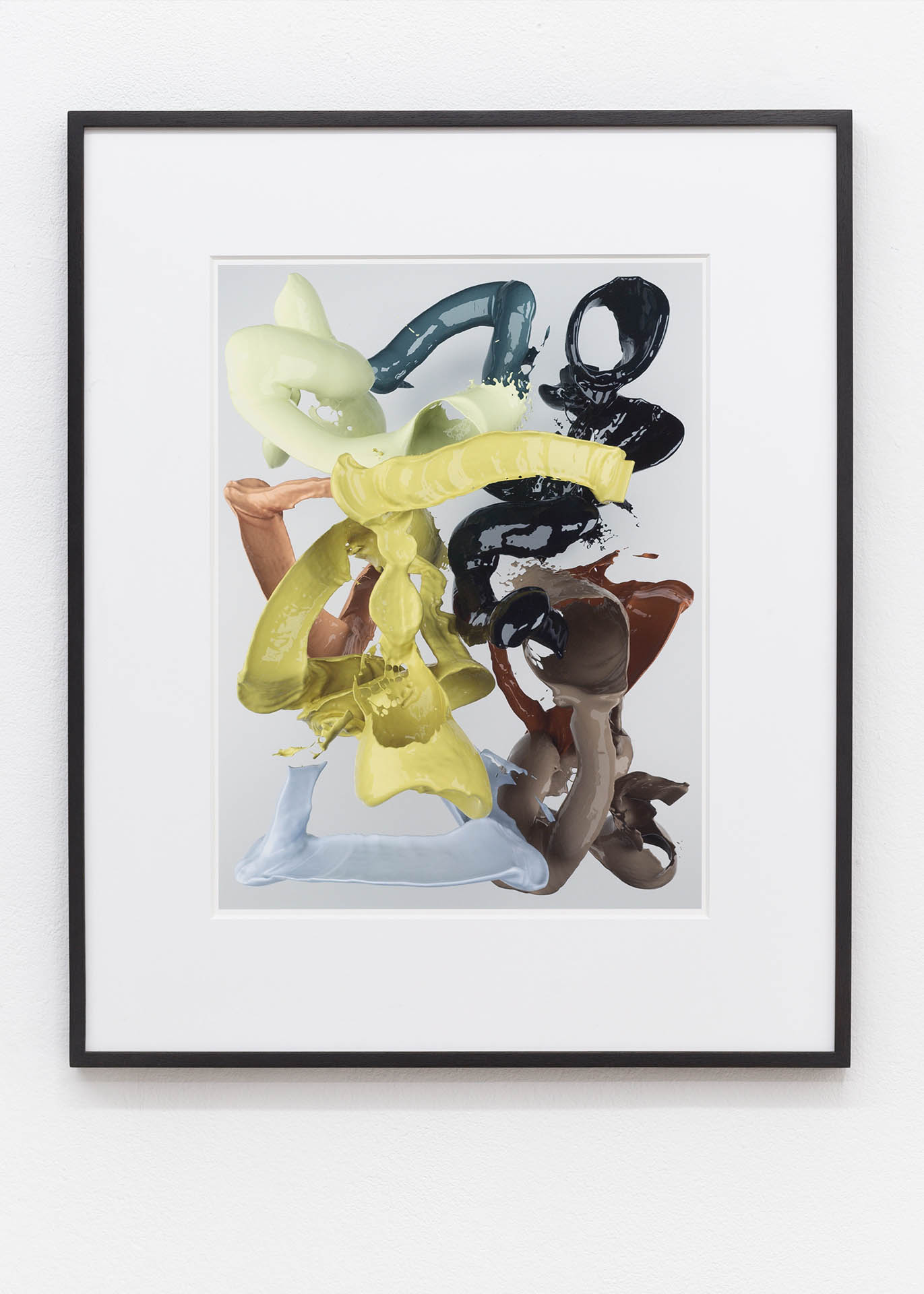 In Giulia Bowinkel & Friedemann Banz series of ”body paintings”, the body becomes the shaping pulse. Recordings of body movements in space are coupled with fluid simulations. The generated forms follow the movement of people, translating physical body language into a transparent-digital gesture, settling in an amorphous body of color. These pigments, which find their form in picturesque expressions, do not stand alone. Transition of shapes are repeated at different times and spaces, then reorganized and expressed in a potential picture-moment that remains flexibel.