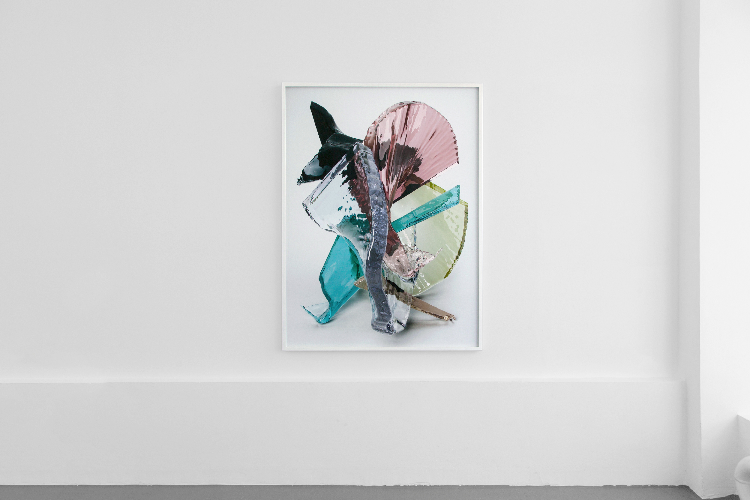 Thus, the individual prints are crystallizations from these movements (opposed to moving images) – they exist as situational shots that Bowinkel & Banz situationally link in their presentation. Using a tool for computer-based perception of reality (augmented reality) the artists place another digital layer over the two-dimensional picture of the real exhibitional space and point once again to the complexity of vision: The image is a virtual sculpture, which is only created through the movement of its viewer and varies its shape reflecting the individual’s action in the space. While observing the image reference points arise between the image and human, opening a scope of a definitions, compositions and expansions of reality.