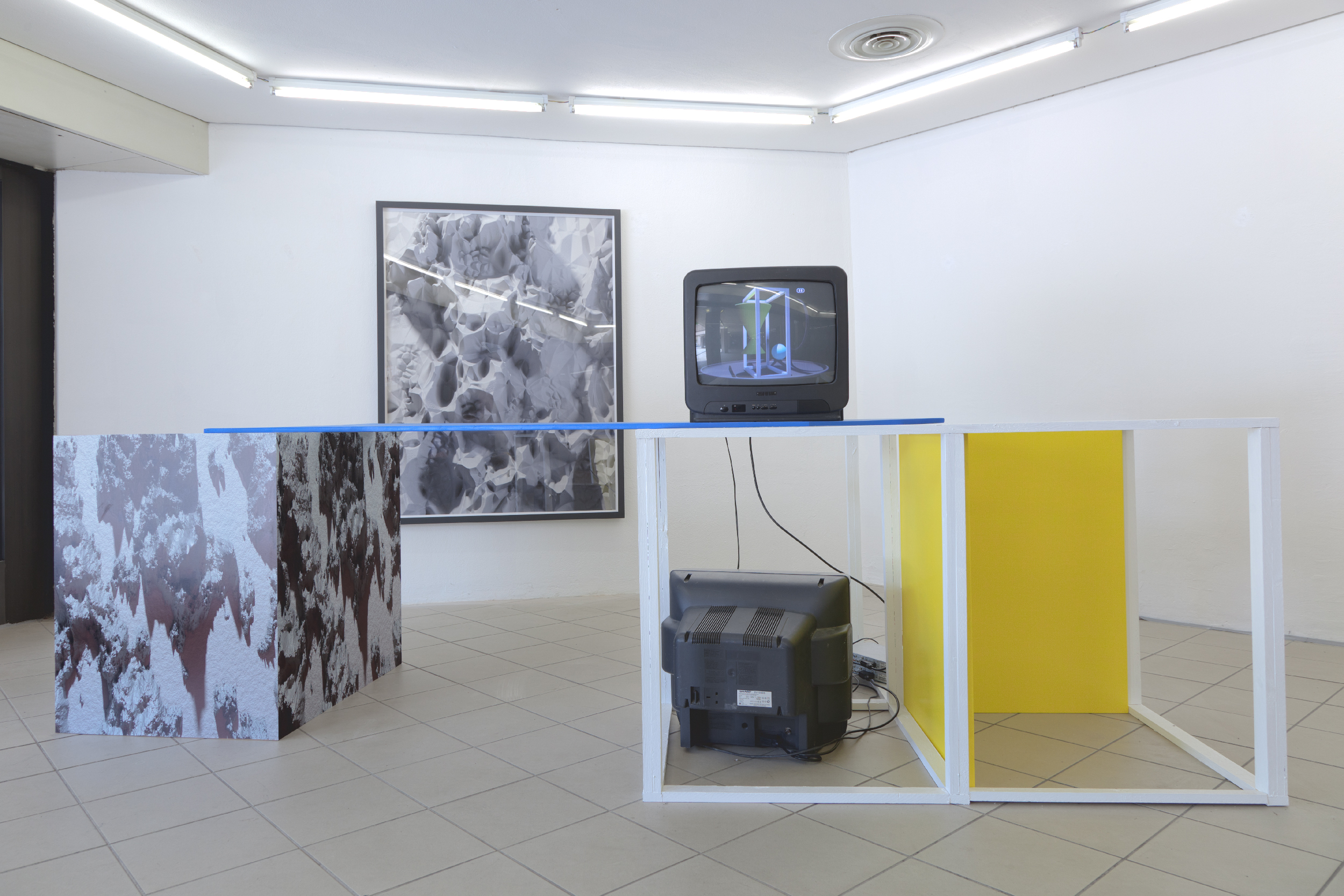 The METAFURNISH series (2013) consists of abstract compositions of digital objects rotating on turntables. This type of presentation is a classic of 3D visualization, as the viewer is shown the object from all sides and can develop a spatial understanding. The objects by Banz & Bowinkel, however, undermine viewing habits: physical properties, such as gravity, lose their meaning in digital space. Reflections show parts of the objects that do not exist. The tense puzzle pictures question the values of digitally constructed pictures that present perfect surfaces, but in reality often do not meet expectations.